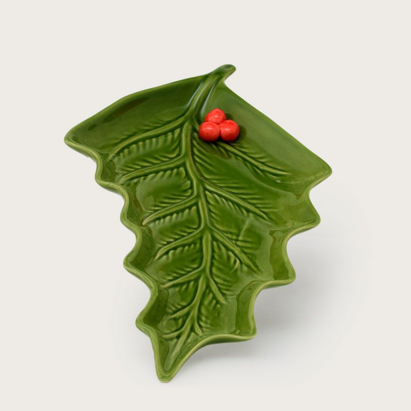 Petisqueira em formato de folha de azevinho da coleção Esquilo para complementar sua decoração.