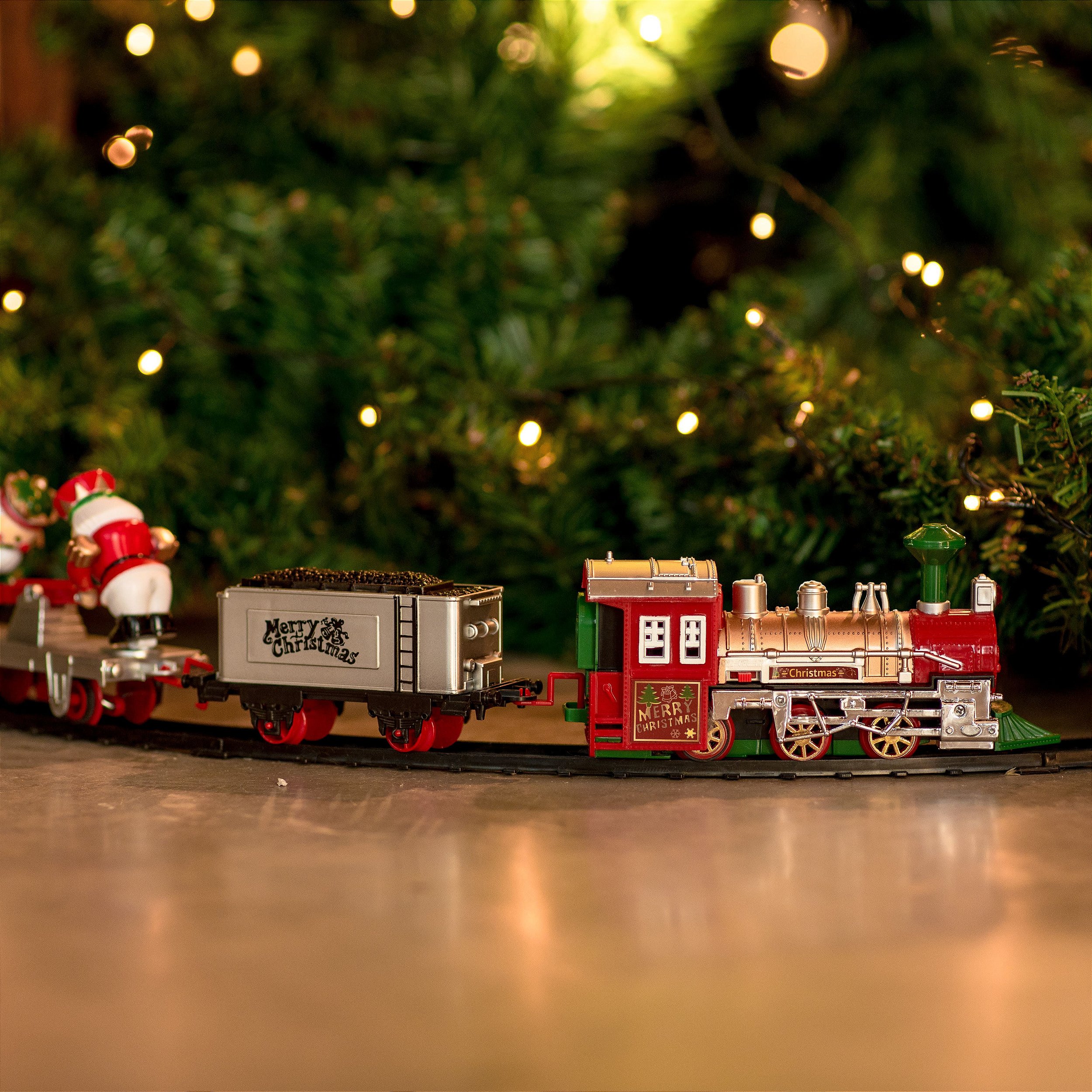 Trenzinho com funcionamento a pilha com som natalino e luz.